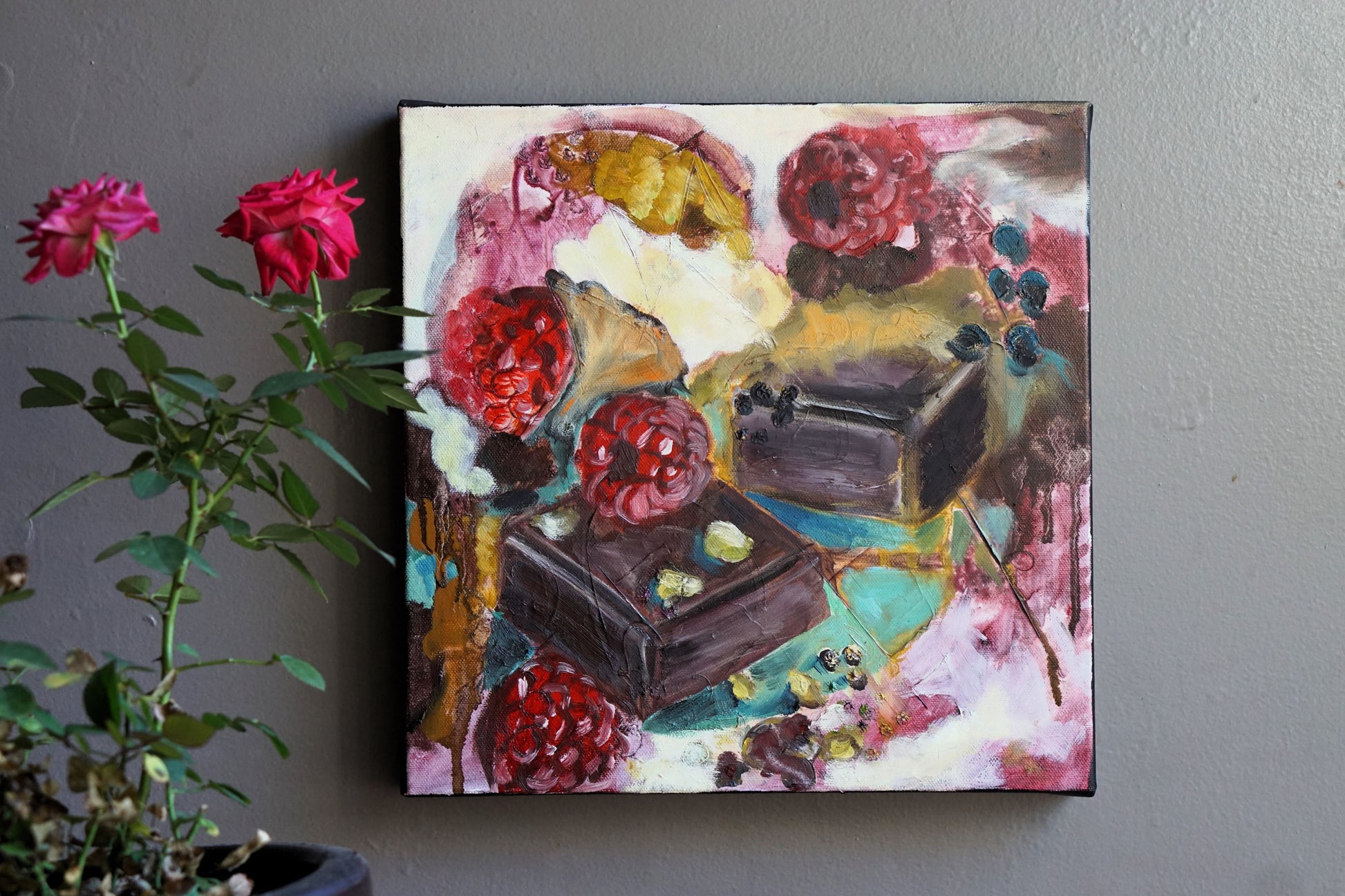 This painting is delicious and sweet! Chocolates, raspberries, caramel everywhere...