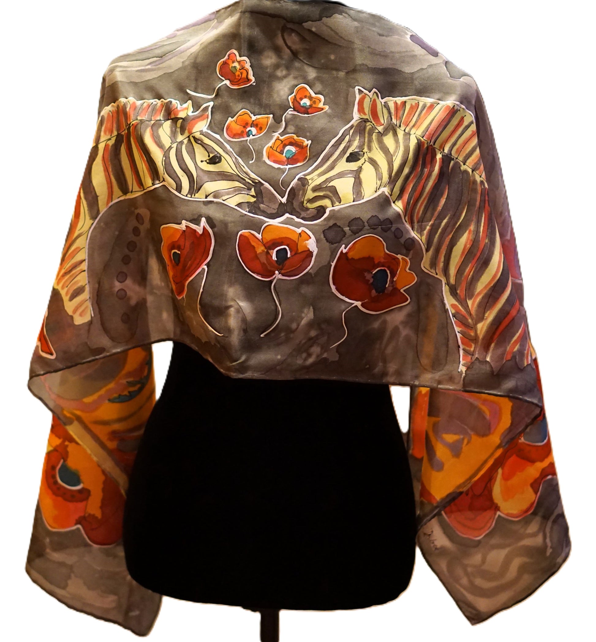 Silk Scarf, Hand Painted on 100% silk Habotai - 11x60mm
